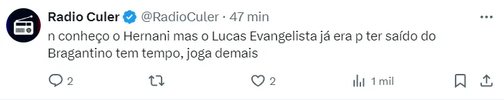 De acordo com informações do apresentador Craque Neto, o Corinthians está negociando a contratação do meio-campista Lucas Evangelista, de 28 anos de idade, um dos destaques do rival Red Bull Bragantino.