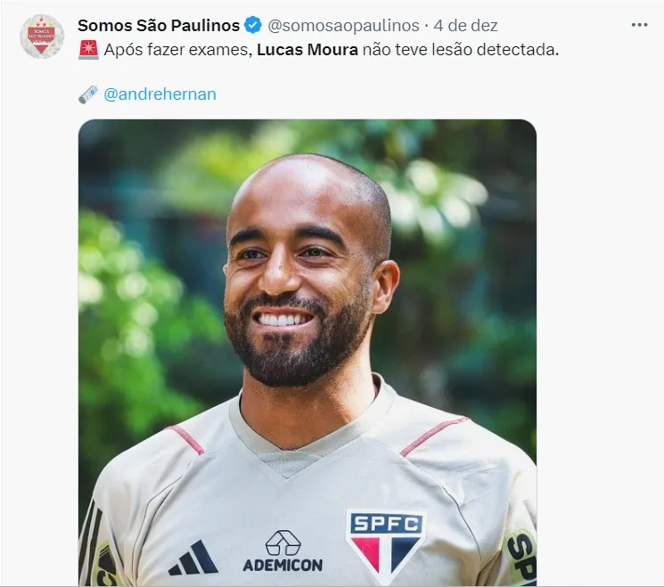 Lucas Moura tem atualização de lesão sofrida