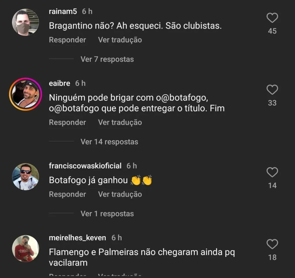 “Pra mim, tanto Palmeiras quanto Flamengo são aqueles que ainda podem, por elenco, por consistência, por torcida, alcançar o Botafogo.”, disse o ex jogador.