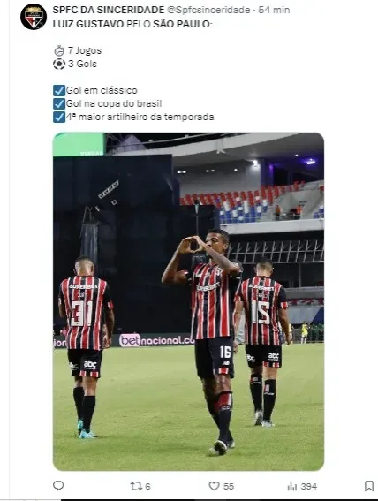 Apesar das incertezas sobre seu futuro no clube, Luiz Gustavo se mostrou contente em poder contribuir para o São Paulo, especialmente após passar por um período difícil de lesão.