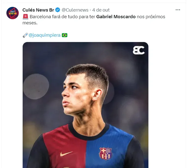 De acordo com a fonte, tanto o Real Madrid quanto o Barcelona estão de olho no talento de Gabriel Moscardo, uma das maiores promessas do futebol brasileiro na atualidade.
