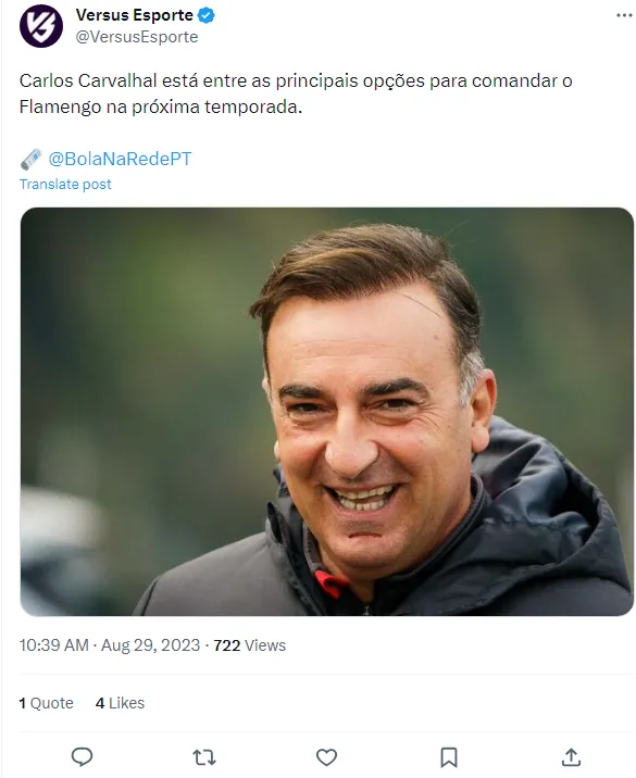 Segundo Luís Pinto Coelho, o treinador é considerado uma das prioridades para o Flamengo em 2024, já que a permanência de Jorge Sampaoli é vista hoje como praticamente impossível, após os maus resultados.