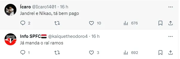 De acordo com a publicação, falta apenas o São Paulo acertar a forma de pagamento, com o Tricolor podendo envolver alguns jogadores nas negociações.
