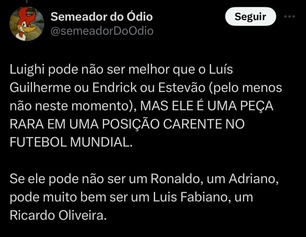 Os principais interessados na contratação do atacante são equipes do Campeonato Italiano, porém, o Palmeiras já tomou uma posição referente ao futuro de Luighi.