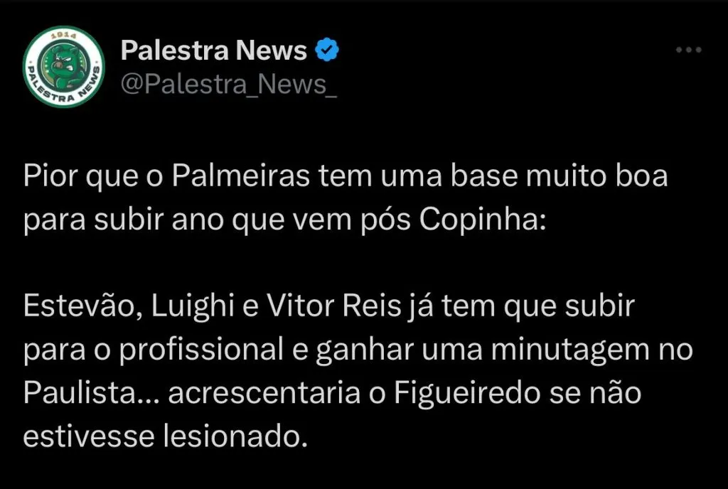 O Palmeiras não deve parar em Endrick e pode faturar alto valor com mais uma de suas promessas da base, que tem se provado uma das mais vitoriosas dos últimos anos.