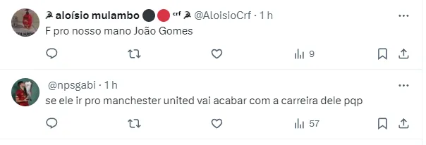 Isso porque, de acordo com o Mirror Sport, da Inglaterra, o Manchester United está interessado no brasileiro João Gomes para a vaga de Casemiro, que vem tendo a saída especulada.