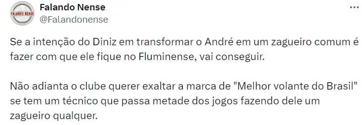 Segundo a matéria, o Manchester United ainda não apresentou nenhuma oferta por André, mas já está ciente de que o Fluminense aceitaria vendê-lo por uma valor na casa de 30 milhões de euros (R$ 133 milhões na cotação atual).