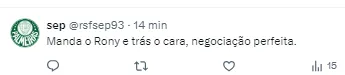 “Meu centroavante reserva é o Rony, ÓBVIO”