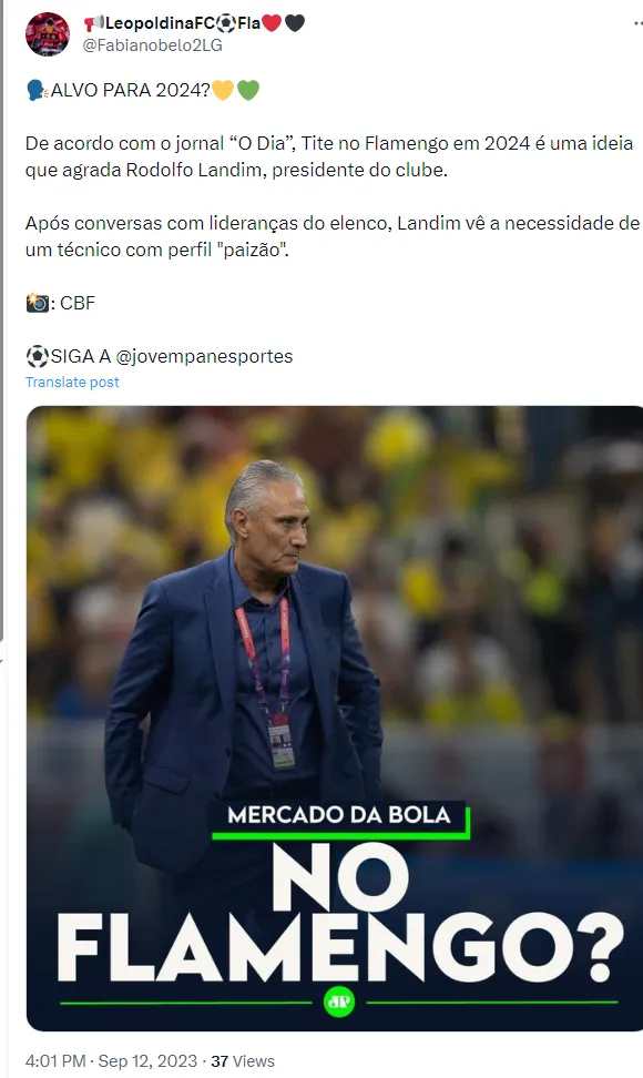 Um desses nomes, e possivelmente o mais desejado, de acordo com o jornalista Mano, é Tite, que está sem clube desde o término da Copa do Mundo de 2022. No programa ‘Arena SBT‘, Mano destacou a passagem bem-sucedida do técnico pelo Corinthians e afirmou que o treinador de 62 anos seria capaz de resolver os problemas do Flamengo.