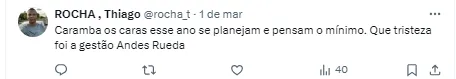 Ainda segundo a matéria, Fábio Carille está satisfeito e entende que aqueles que serão protagonistas já estão no elenco, mas a procura ainda é pelos coadjuvantes para reforçar ainda mais e suprir carências. Rodrigo Ferreira, por exemplo, se encaixa no contexto que a diretoria quer do novo perfil de contratações.