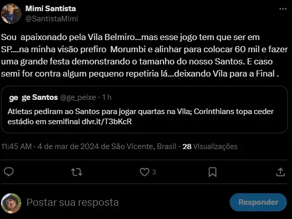 O Timão está disposto a negociar a própria Arena, visto que está eliminado do Paulistão. Até uma possível semifinal poderia ser disputado na casa do rival santista, em Itaquera.