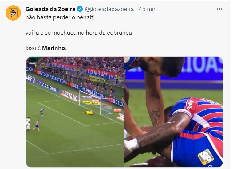 Marinho protagonizou um lance bizarro contra o Corinthians e recebeu uma chuva de críticas dos torcedores, após o atacante perder a cobrança de pênalti que ele sofreu e, por cima, ter se lesionado. Na web, o jogador foi alvo de críticas dos torcedores.