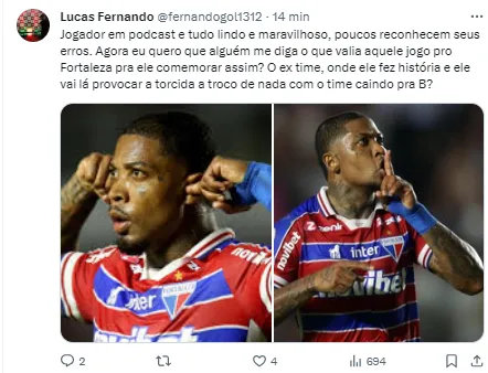 E a notícia inesperada para a torcida santista chegou também no vestiário do Fortaleza. Isso porque, um dos autores do gol daquela última rodada foi Marinho, que já defendeu as cores do Santos.