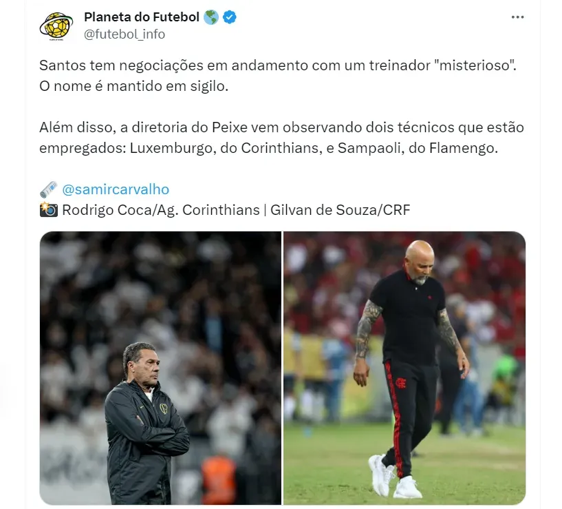 Sampaoli teve uma passagem marcante pelo Santos em 2019, quando levou o clube ao vice-campeonato do Brasileirão. Além do treinador argentino, Luxemburgo também está sendo observado pelo Peixe, conforme relata Samir Carvalho.