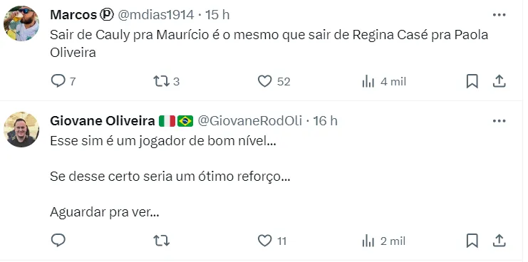 Hoje, o maior interessado no futebol de Maurício é o Corinthians, que busca se reforçar para a temporada de 2024. O Timão, de olho, ofereceu, recentemente, 8 milhões de euros ao Inter pelo atleta, mas o time de Porto Alegre recusou.