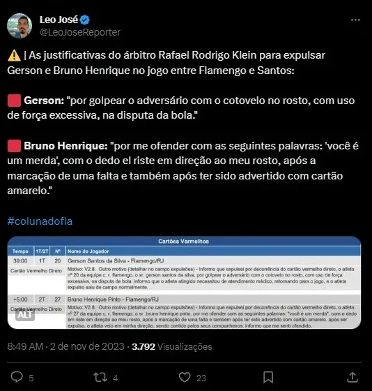 “O mesmo jogador levou cartão vermelho ainda na primeira etapa. Rigoroso, sim, mas isso não anula a imprudência de um atleta com títulos, duas passagens pelo futebol europeu e convocações para a Seleção Brasileira”, iniciou no UOL Esporte.