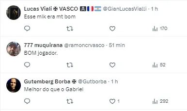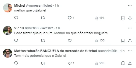 Na web, muitos comentaram que Luan seria melhor contratação do que Gabriel, por exemplo. Luan possui 24 anos, mas ainda não atuou nesta temporada. Já o jogador do Internacional tem 31 anos e participou de duas partidas até aqui. Confira abaixo alguns comentários da torcida (SIC).