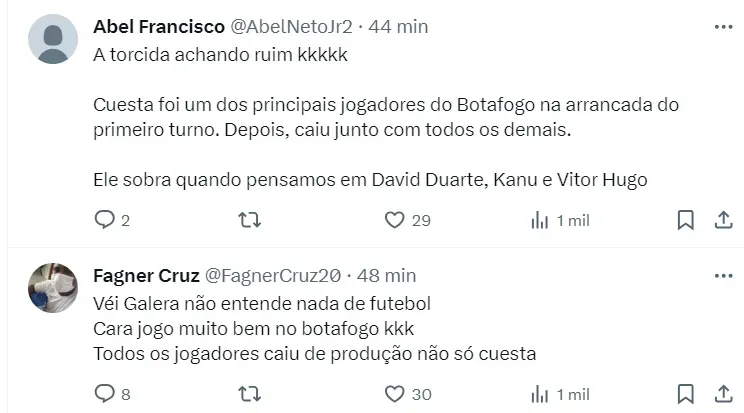 Cuesta defendeu as cores do Botafogo na última temporda e chegou a viver grande fase com o time do Glorioso, que liderou o Brasileirão por várias rodadas e veio a perder o título no final do ano.
