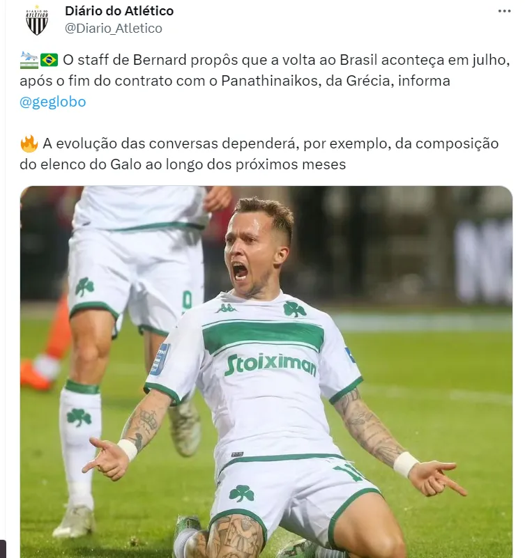 A ideia do jogador é voltar ao Atlético-MG o quanto antes possível, ainda nesta janela, que está aberta para novos acordos. Todavia, devido ao forte jogo duro do time da Grécia, um acordo ficará para julho.