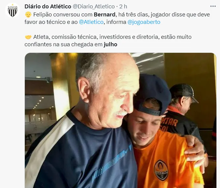 Revelado pelo time de Belo Horizonte, Bernard está próximo de voltar ao clube. Ele deseja isso, o Galo tem interesse em seu futebol e Felipão, técnico do clube, tratou de colocar ainda mais panos quentes nos rumores.