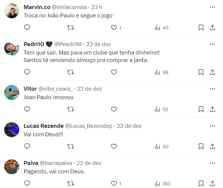 Atualmente, o goleiro titular do Santos é João Paulo. Ele tem contrato com o Peixe por mais alguns anos e deseja permanecer no clube. Todavia, pelo fato de JP ser alvo de gigantes nacionais, o Santos olha para o mercado em busca de um novo nome.
