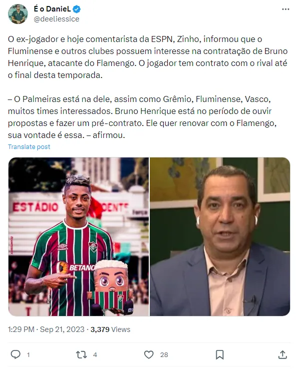 Em relação ao próximo ano, considerando que a janela de transferências já está encerrada, o Fluminense, que recentemente contratou Diogo Barbosa, Marlon e Leonardo Fernández, é mais um dos clubes interessados em uma grande estrela do Flamengo.