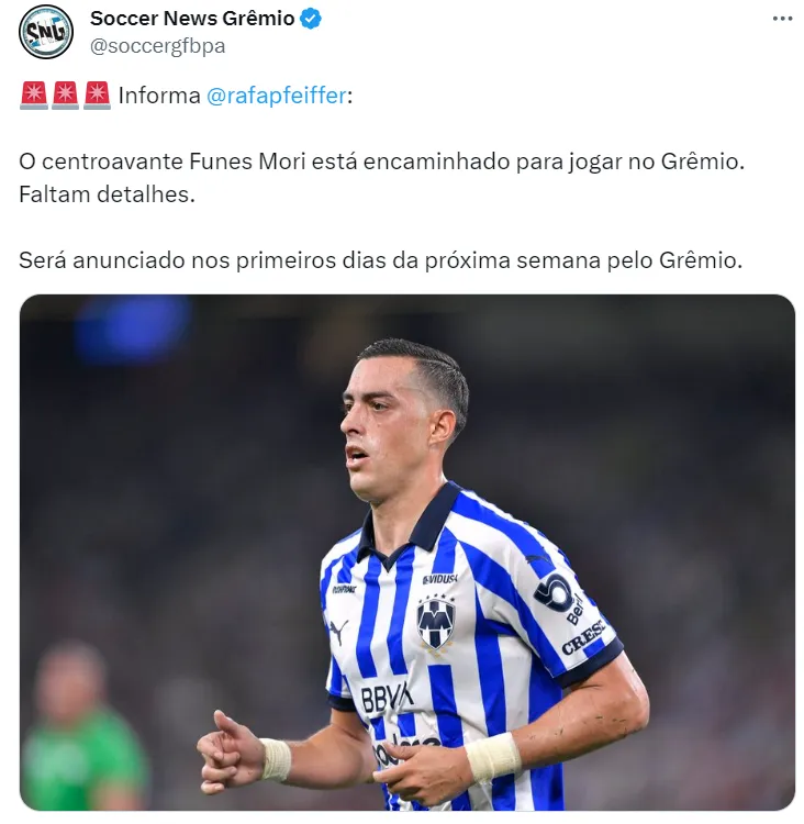O Grêmio, no entanto, não deseja parar apenas em Vincent Aboubakar e tem conversas praticamente seladas para anunciar outro nome, Funes Mori, atualmente, no futebol do México.