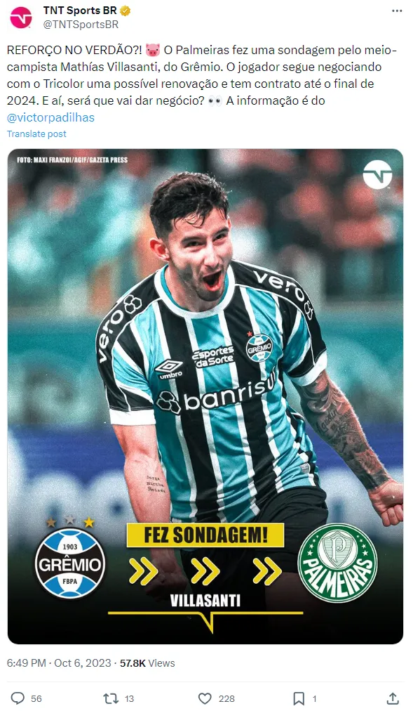 Atualmente, o valor de mercado de Villasanti é avaliado em 7 milhões de euros (aproximadamente R$ 38 milhões), conforme o ‘Transfermarkt‘. Desde sua chegada ao Grêmio em 2021, o meio-campista se destacou como uma das peças-chave do clube, o que o torna uma opção atraente para o Palmeiras em seus planos para a próxima temporada.