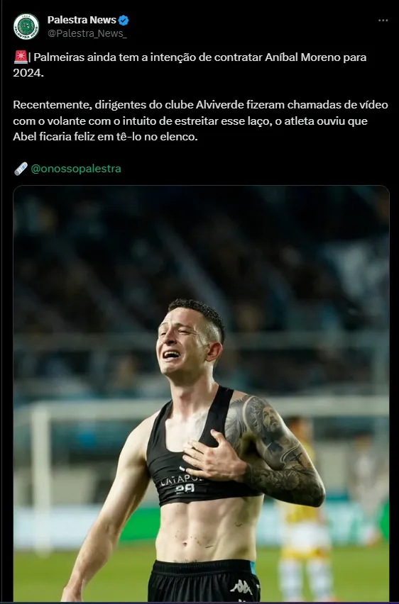 Por isso, um destaque argentino volta ao radar do time. De acordo com as informações publicadas pelo portal “Nosso Palestra”, o Palmeiras tem interesse na contratação do volante Aníbal Moreno.