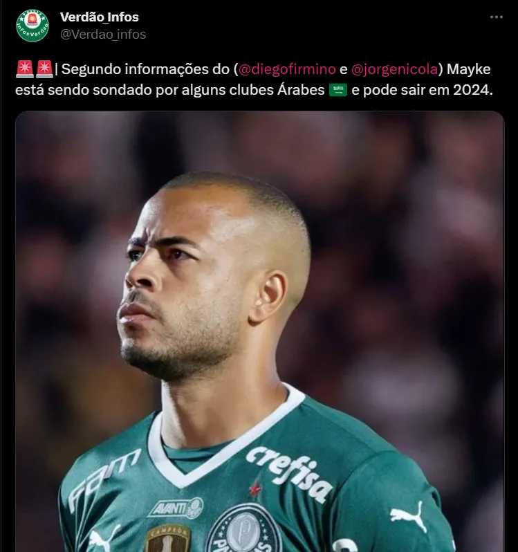 De acordo com as informações reveladas pelos jornalistas Jorge Nicola e Diego Firmino, o lateral-direito Mayke entrou no radar de equipes da Arábia Saudita e pode deixar o Alviverde em breve.