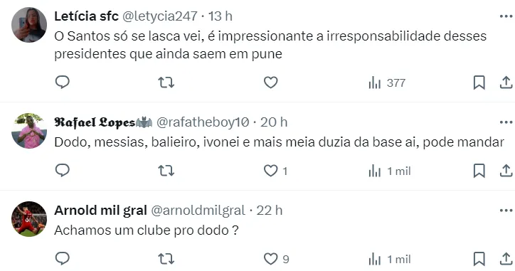 Os nomes dos atletas, no entanto, não foram citados pelo jornalista, mas tende a ser jogadores que estão em baixa ou sem espaço com Carille em São Paulo, como, por exemplo, Dodô.