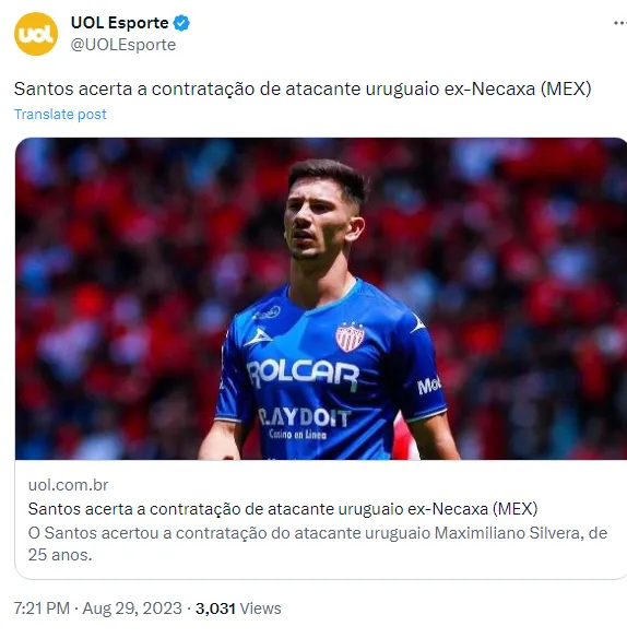 Tendo em mente que a fase não está fácil e o clube precisa somar pontos para sair dessa situação, o Santos acertou a contratação de mais um atacante, tratando-se agora do uruguaio Maximiliano Silvera, como informa o UOL Esporte.