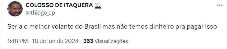 Corinthians considera pedida alta
