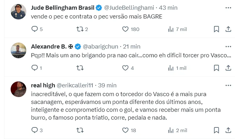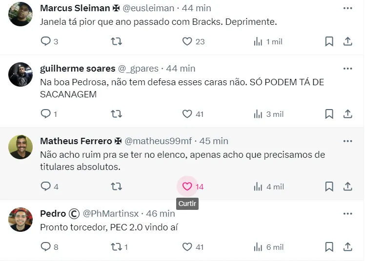 Nos últimos 90 jogos, o atacante balançou as redes em dez oportunidades e realizou cinco assistências. Atacante de lado, marcar gols não é seu forte. Na web, parte da torcida não curtiu muito a informação.