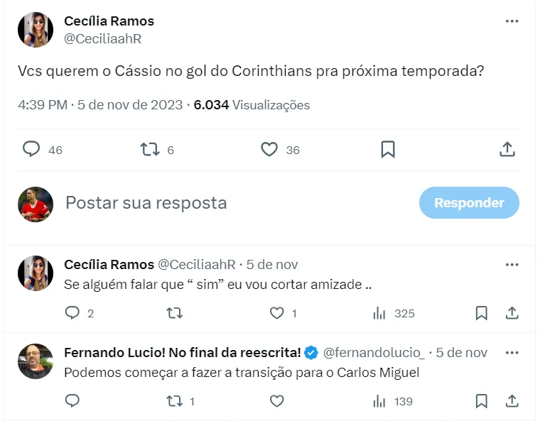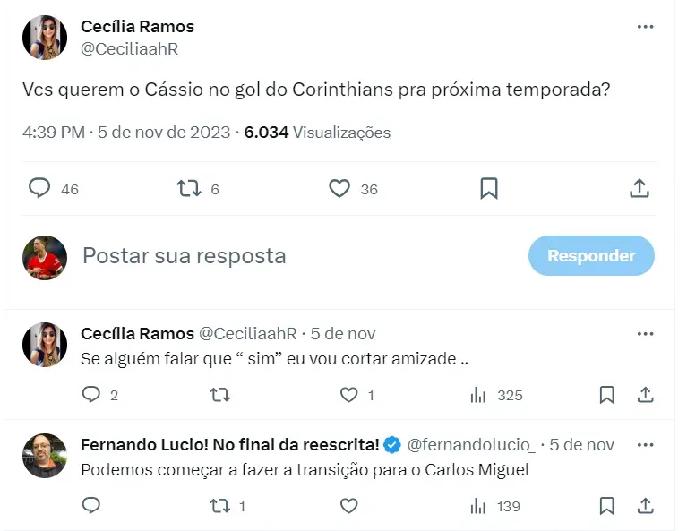 De acordo com ele, Cássio é o mais novo alvo do Grêmio no mercado da bola. Ele surpreende e conta que não se trata de um ‘chute’ e sim uma informação. “Não é chute, é conversa com emprésario”, disse a fonte.