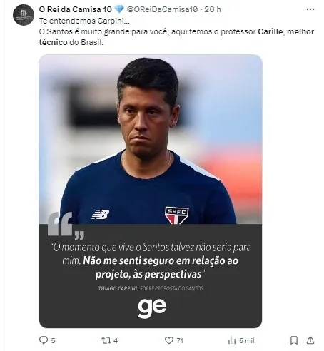 O comentarista elogiou o trabalho de Carille, que assumiu o comando do Santos em um momento delicado, encontrando o clube em uma situação desafiadora.