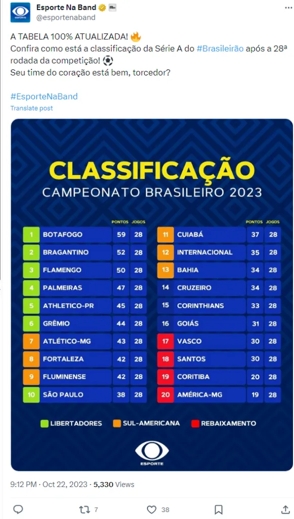 Classificação do Brasileirão 2023