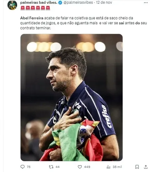 O jornalista Milton Neves, em sua coluna no UOL Esporte, trouxe à tona a situação, destacando a fala de Abel e apontando um nome para substituir o treinador em caso de desligamento.