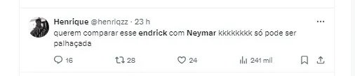 “Endrick é um menino maravilhoso. Tem tudo para ser maior que Neymar. E, quem sabe, pode ultrapassar até outros grandes nomes do futebol mundial”, afirmou o comentarista.