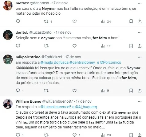 “Neymar, é verdade, nem tem muitas chances de disputar o próximo Mundial, em 2026, quando terá 34 anos. Mas essa passagem de bastão para nossos jovens craques precisa ser feita com muita calma, principalmente durante o próximo ano”, complementou Milton Neves.