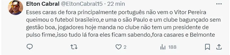 A resposta de Mourinho desanimou os alinhados. Jorge Mendes foi quem respondeu para o treinador, e negou qualquer chance do português trabalhar no futebol brasileiro.