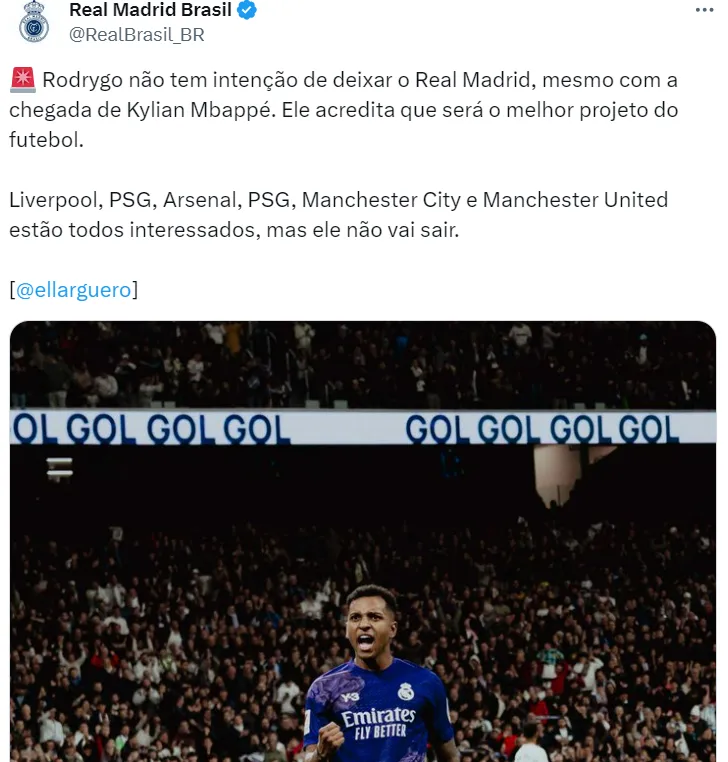 Rodrygo tende a perder espaço no clube merengue com a chegada de Mbappé. O craque francês está de saída do PSG e tem conversas avançadas para jogar no clube da capital da Espanha.