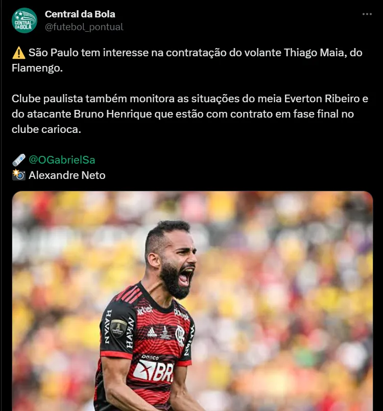 O jogador vem em baixa no Flamengo, sendo bastante criticado por parte da torcida. Desse modo, o tricolor vê com bons olhos a sua contratação. Conforme a fonte, o time paulista também observa a situação de Everton Ribeiro, também perto do fim de contrato.