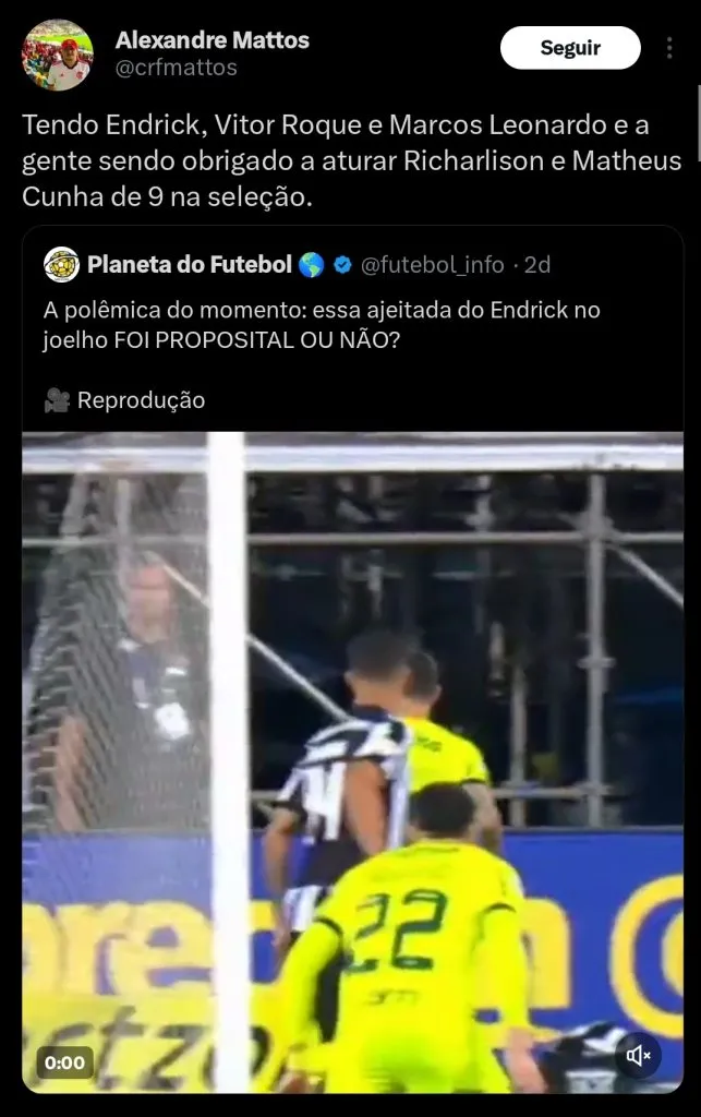 Durante live dos canal da TNT Sports no YouTube, André Henning e outros elementos debateram sobre o futuro da seleção brasileira. Ao ser questionado sobre quem será o futuro camisa 9 da equipe, André apontou para Vitor Roque.