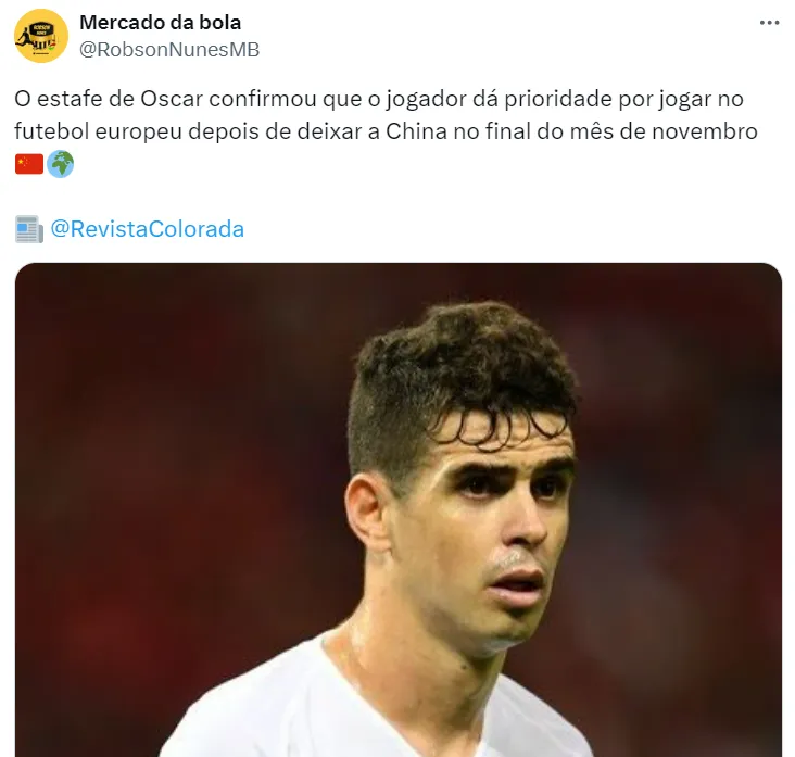 De acordo com a matéria, a decisão de Oscar de voltar ao futebol europeu já está tomada. Nenhum clube foi citado, mas é certo que o meia tentará acertar sua volta ao velho continente antes de voltar ao Brasil.