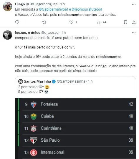 Ambas as equipes, Santos e Corinthians, agora aguardam seus próximos desafios no Campeonato Brasileiro, buscando consolidar sua permanência na série A. O Santos enfrentará o Cuiabá na próxima segunda-feira na Vila Belmiro, enquanto o Corinthians enfrentará o Red Bull Bragantino no domingo seguinte, no interior paulista.