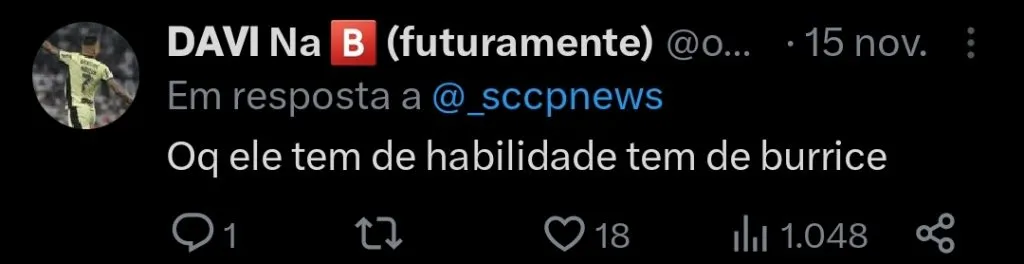 Trata-se do jovem atacante Wesley, que ganhou espaço no clube alvinegro neste ano, principalmente durante a passagem de Vanderlei Luxemburgo.