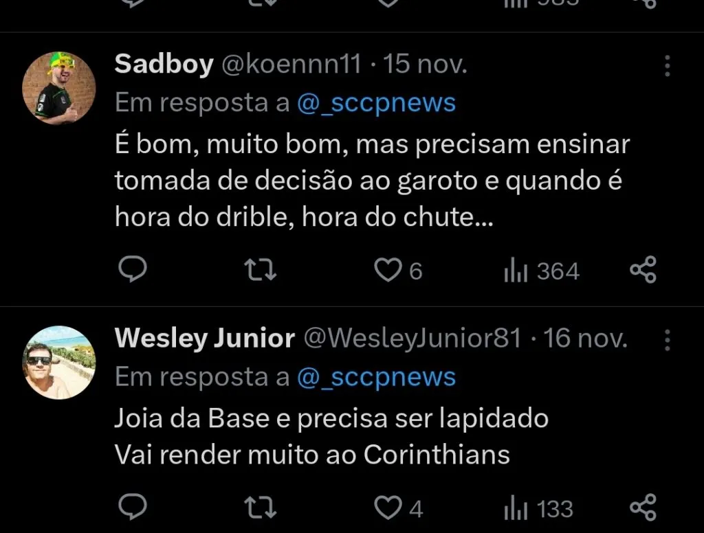 Wesley tem contrato até agosto de 2027 e com apenas 18 anos, já disputou 35 partidas pelo profissional, com dois gols marcados e uma assistência distribuída.