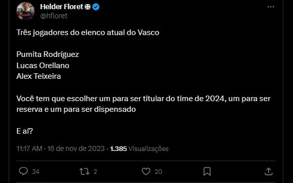 Vale lembrar que a família Díaz chegou ao Vasco da Gama para suceder o duvidoso trabalho do técnico Maurício Barbieri e encontrou muitos atletas aprovados pela comissão anterior.