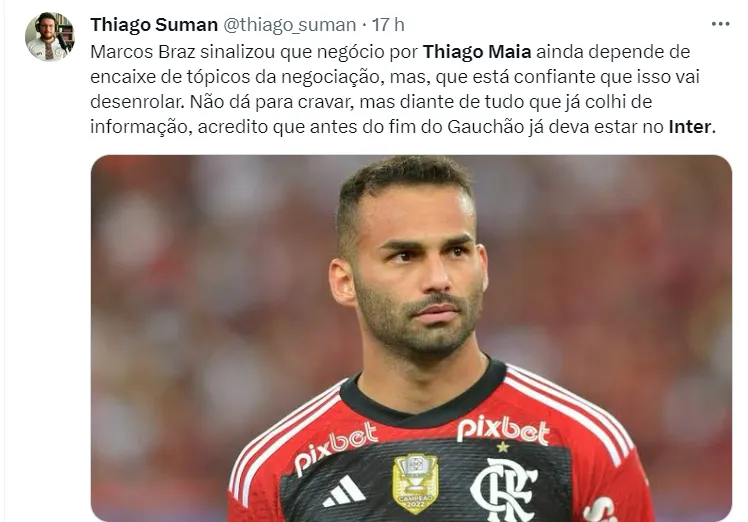 “Eu acredito que as coisas irão acontecer e acredito ainda que o Matheuzinho ainda saia um pouquinho na frente do que tá o Thiago Maia”, disse o diretor flamenguista.